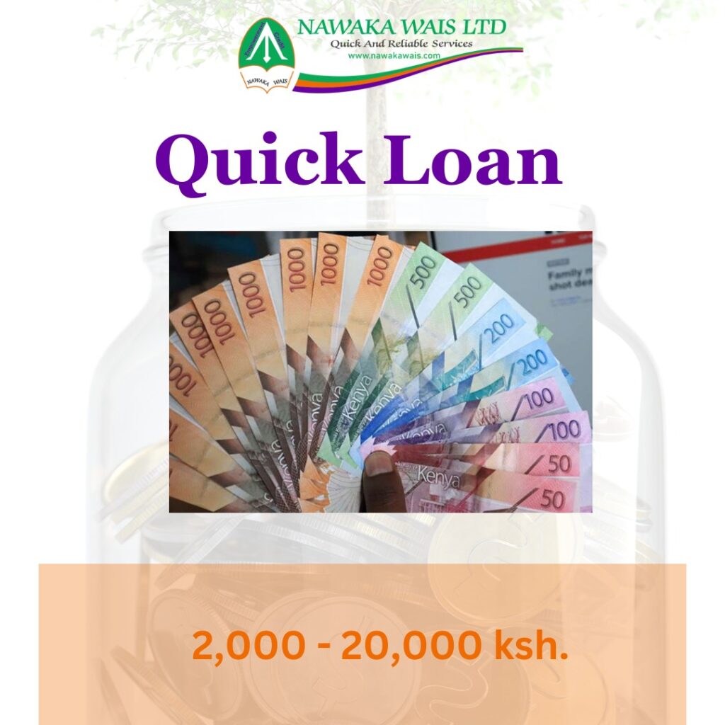 Our Quick loan product is specifically tailored to meet the financial needs of individuals in informal businesses, enabling them to access cash quickly, affordably, and securely, from Ksh 2,000 to Ksh 20,000.
